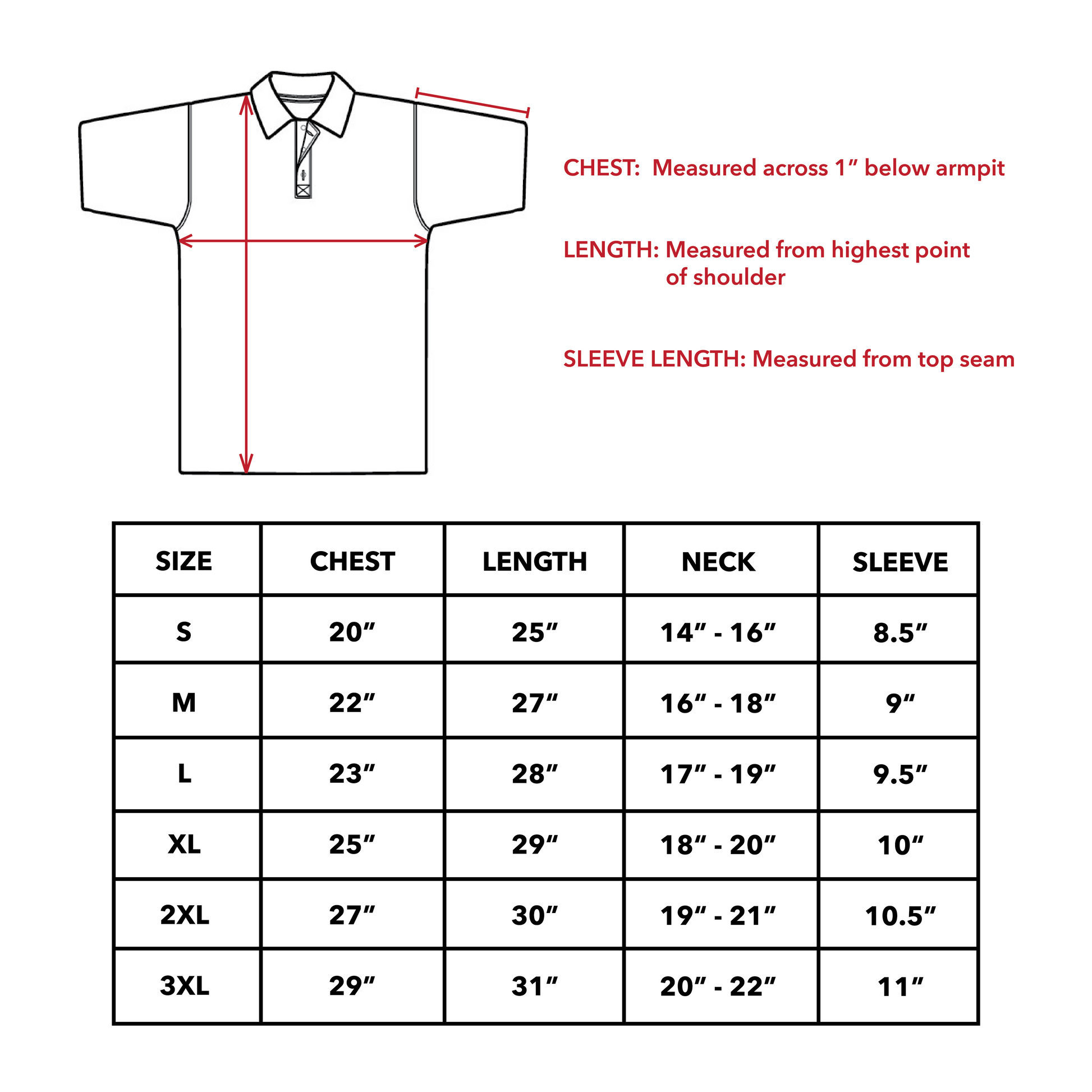 *VIEW SIZING CHART ABOVE*